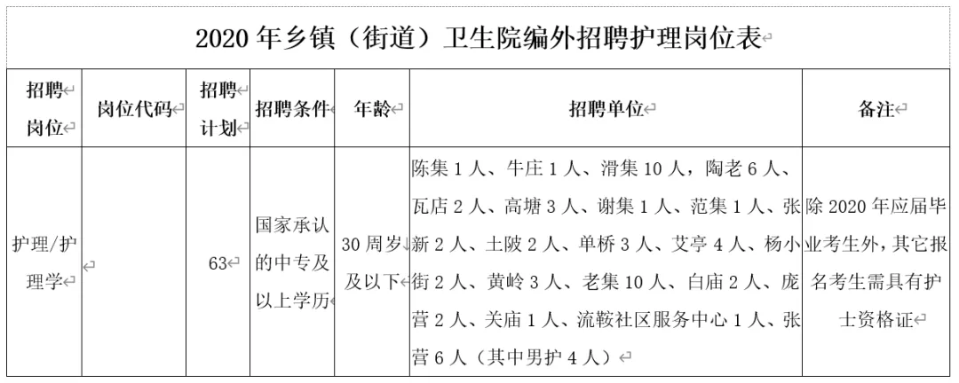 本次計劃招聘中專及以上學(xué)歷護(hù)理崗位人員63名(詳見下表)