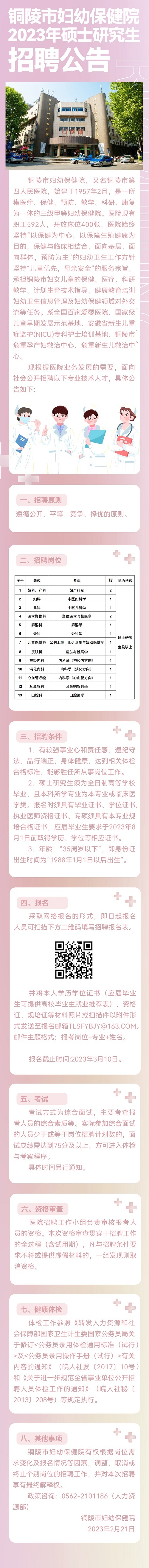 2023年銅陵市婦幼保健院碩士研究生招聘公告