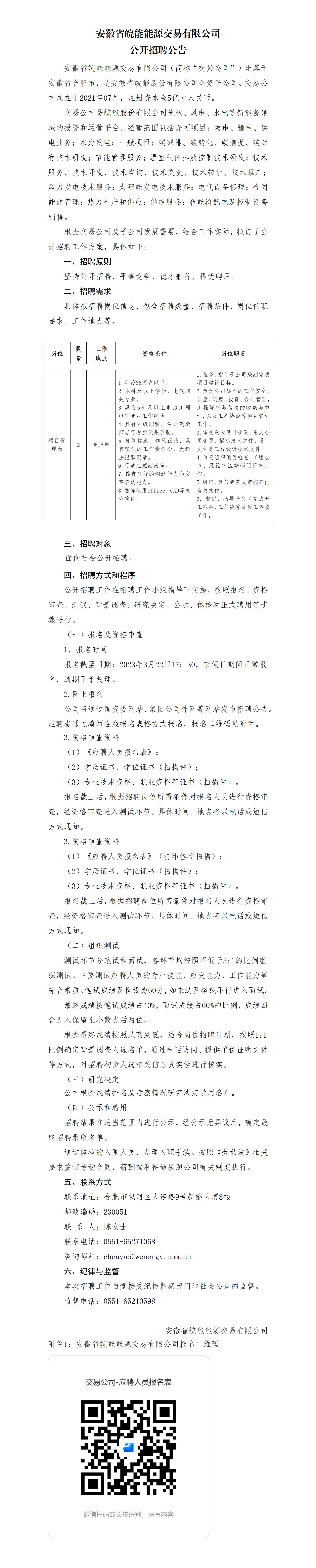 2023年安徽省皖能能源交易有限公司公開招聘公告