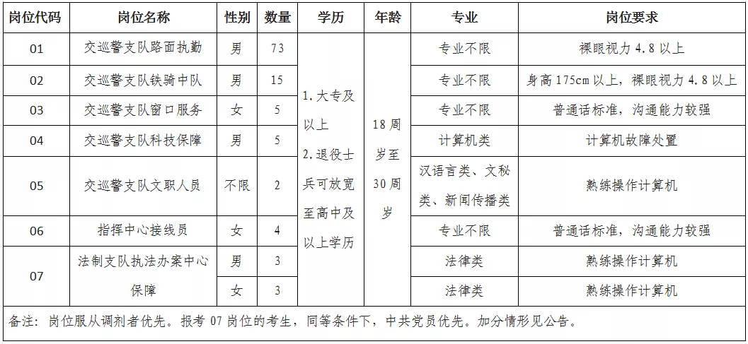 1.本次招聘警務(wù)輔助人員,主要崗位分別為交巡警支隊(duì)從事路面執(zhí)勤、窗口服務(wù)、科技保障崗位和指揮中心接線員、法制支隊(duì)執(zhí)法辦案中心辦案場(chǎng)所保障崗位。