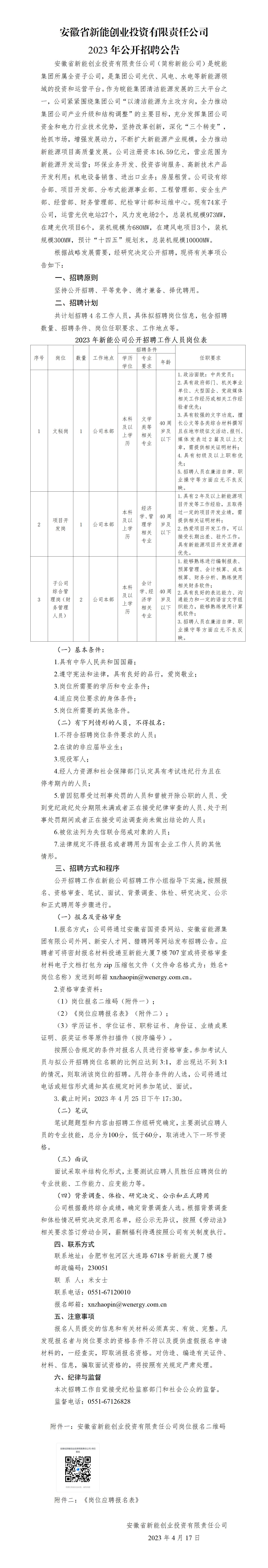 2023年安徽省新能創(chuàng)業(yè)投資有限責(zé)任公司公開招聘公告