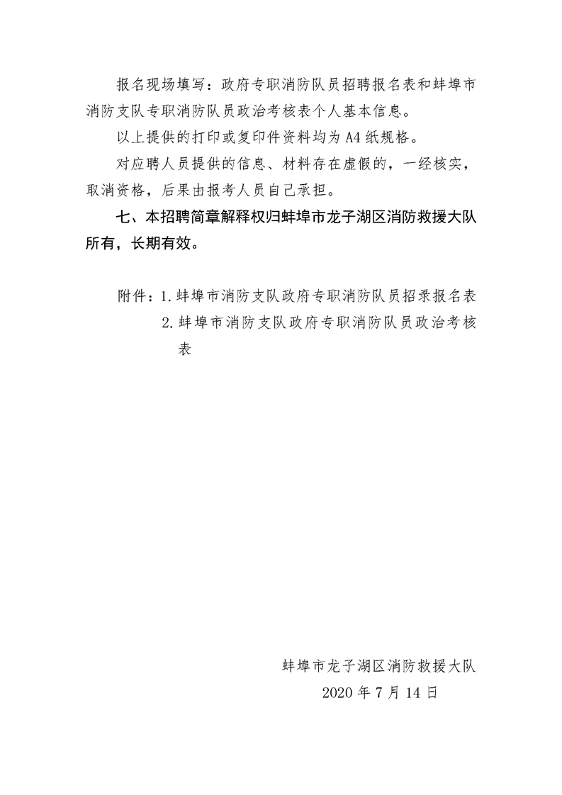 七、本招聘簡章解釋權(quán)歸蚌埠市龍子湖區(qū)消防救援大隊所有,長期有效。