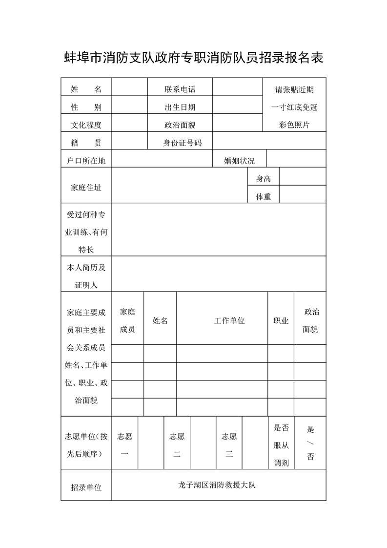 附件: 1.蚌埠市消防支隊政府專職消防隊員招錄報名表