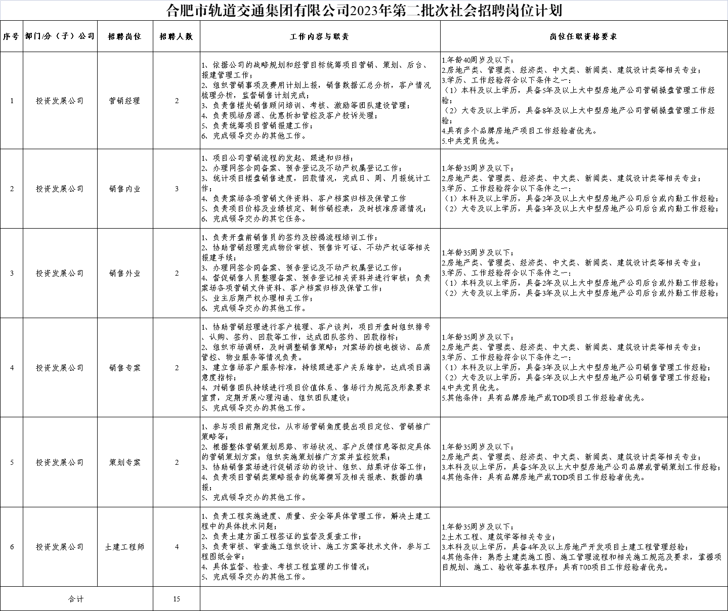 2023年合肥市軌道交通集團(tuán)有限公司第二批次社會招聘公告