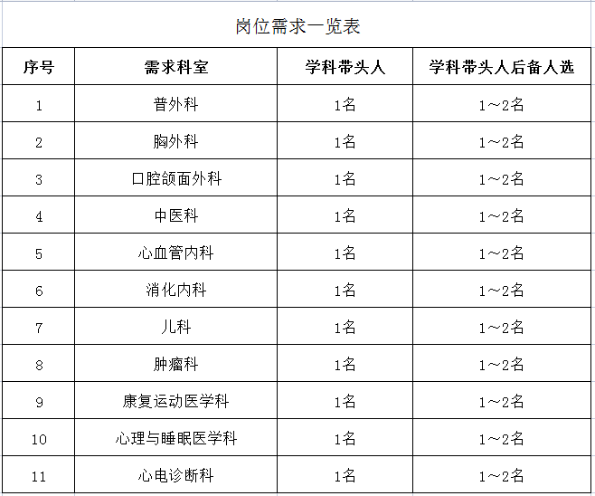 (3)職稱(chēng):臨床科室具有衛(wèi)生系列和教學(xué)系列正高職稱(chēng),醫(yī)技科室具有衛(wèi)生系列正高職稱(chēng)、教學(xué)系列副高職稱(chēng)。