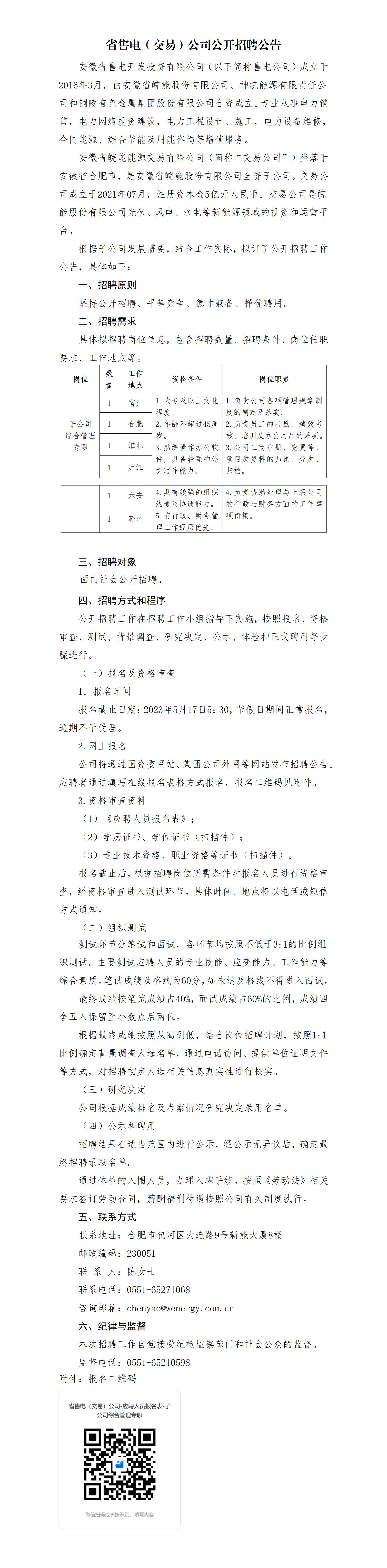 根據(jù)子公司發(fā)展需要,結(jié)合工作實(shí)際,擬訂了公開招聘工作公告,具體如下:
