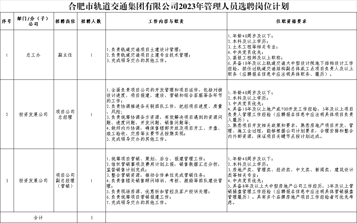 2023年合肥市軌道交通集團(tuán)有限公司公開選聘管理人員公告