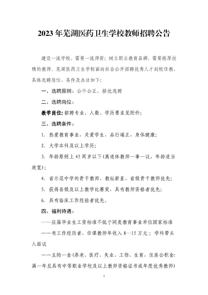 2023年蕪湖醫(yī)藥衛(wèi)生學校教師招聘公告