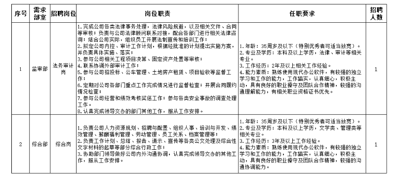 為滿足公司發(fā)展需要,根據(jù)《合肥市地方鐵路投資建設(shè)有限公司員工招聘管理辦法》的要求,結(jié)合公司的實際情況,擬面向社會公開招聘2名工作人員,具體招聘實施方案如下:
