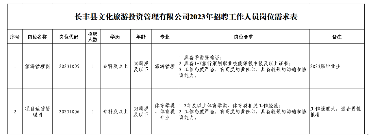 4.長豐縣文化旅游投資管理有限公司有權根據(jù)崗位需求變化及簡歷投遞情況等因素,調(diào)整、取消或終止個別崗位,本次招聘最終解釋權歸長豐縣文化旅游投資管理有限公司所有。