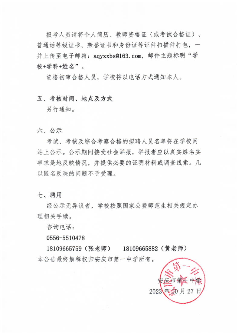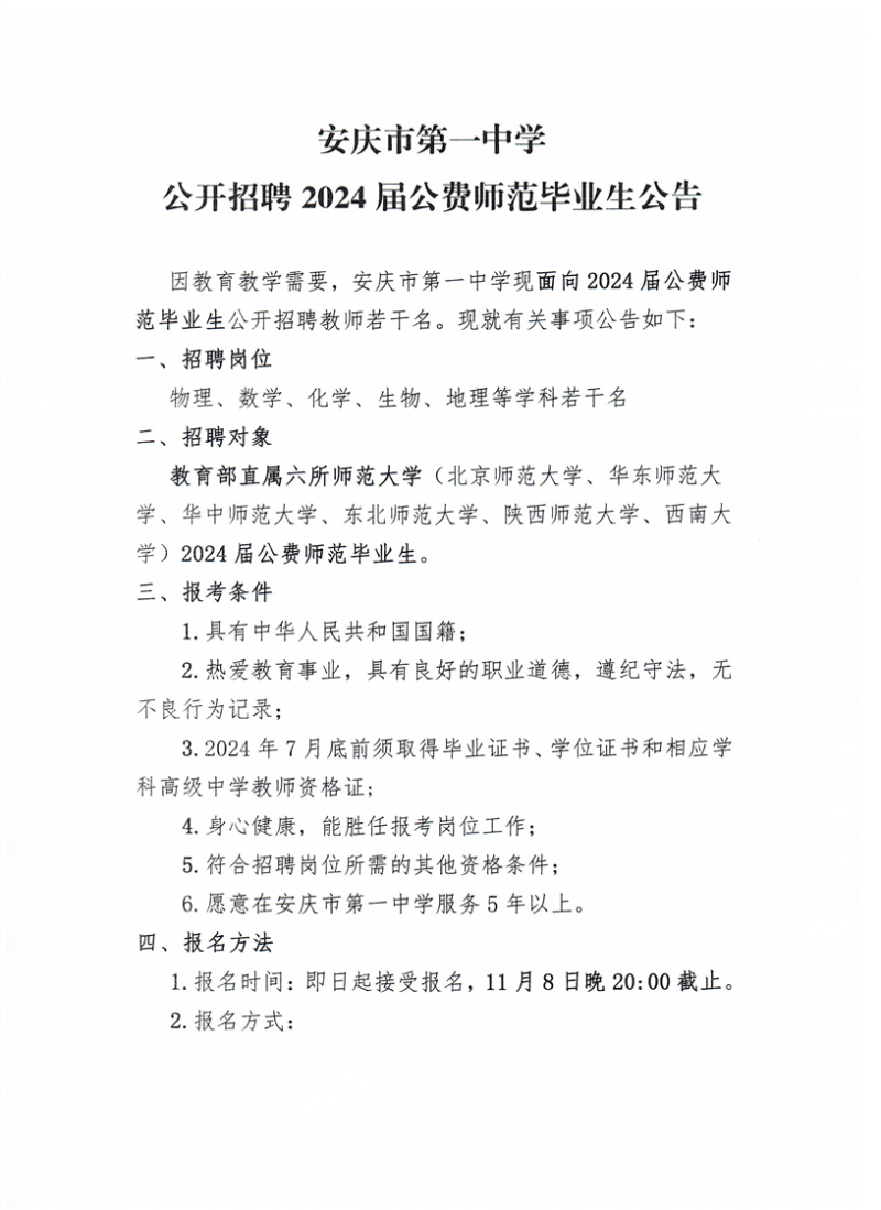 6.愿意在安慶市第一中學(xué)服務(wù)5年以上。