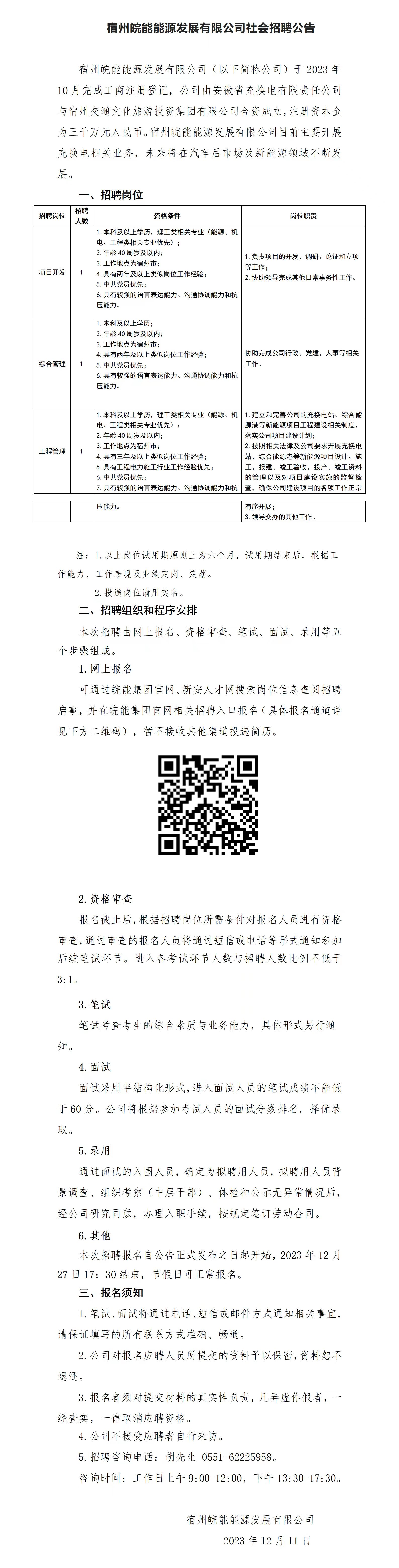 2023年宿州皖能能源發(fā)展有限公司社會(huì)招聘公告