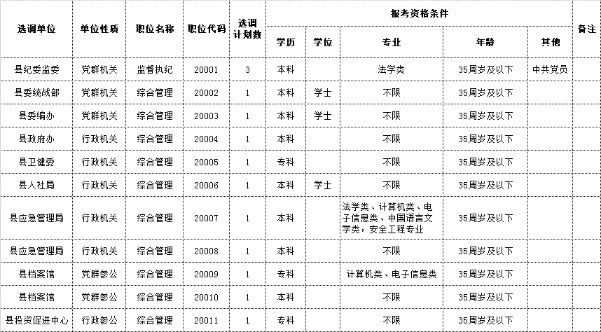 2020年馬鞍山含山縣縣直機(jī)關(guān)公開(kāi)選調(diào)公務(wù)員職位表