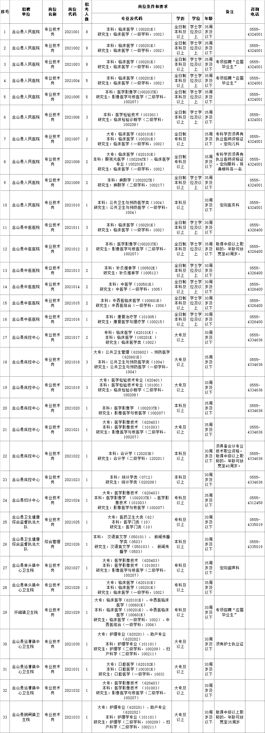 2021年馬鞍山含山縣醫(yī)療衛(wèi)生事業(yè)單位公開招聘工作人員崗位計劃表