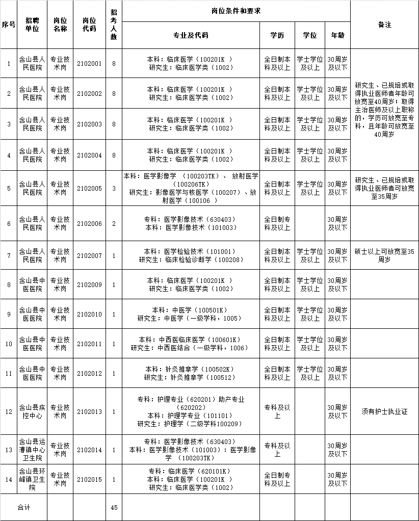 2021年下半年馬鞍山含山縣醫(yī)療衛(wèi)生事業(yè)單位公開(kāi)招聘工作人員崗位計(jì)劃表