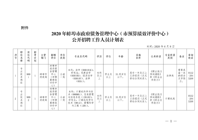 2020年蚌埠市政府債務(wù)管理中心(市預(yù)算績(jī)效評(píng)價(jià)中心)公開(kāi)招聘工作人員計(jì)劃表