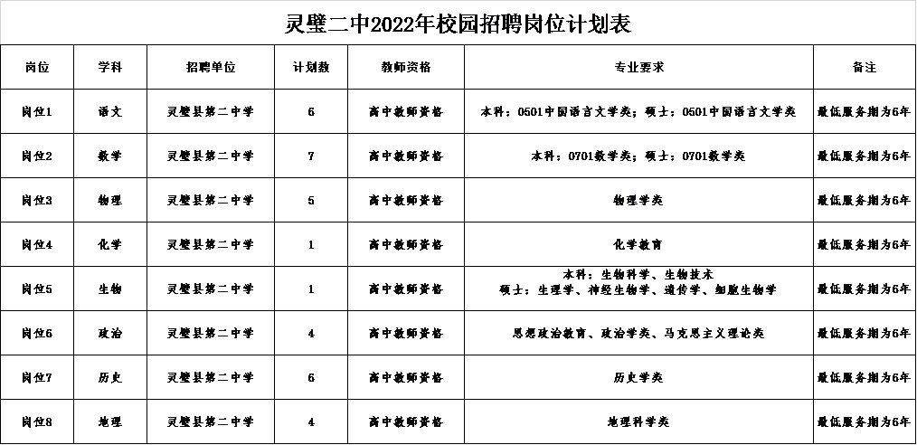 2022年宿州靈璧縣第二中學(xué)校園招聘崗位計(jì)劃表