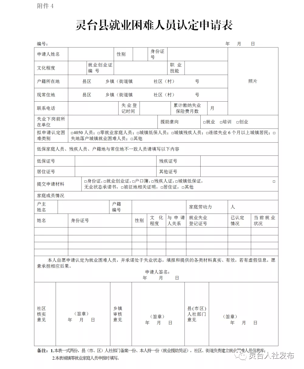 2.靈臺(tái)縣2022年就業(yè)援助申請(qǐng)表