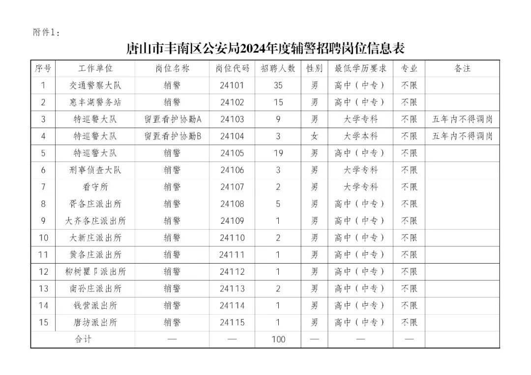 附件:1.唐山市豐南區(qū)公安局2024年度輔警招聘崗位信息表
