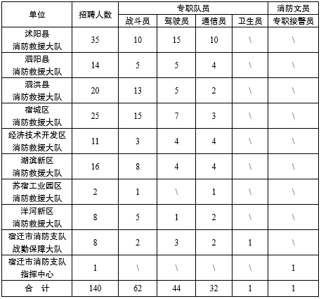 2023-10-26 22:55:54閱讀()宿遷人才網(wǎng)因工作需要,宿遷市消防救援支隊(duì)計(jì)劃面向社會(huì)公開(kāi)招聘140名專職消防員(編外),具體招聘事宜公告如下: