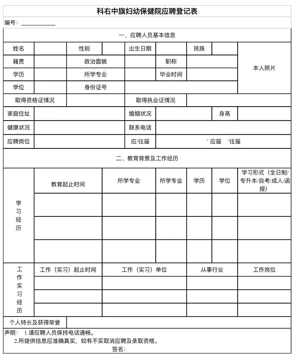 1.報名工作采取現(xiàn)場方式進(jìn)行,現(xiàn)場報名地址興安盟科右中旗婦幼保健院人事科。聯(lián)系電話:0482-4122936