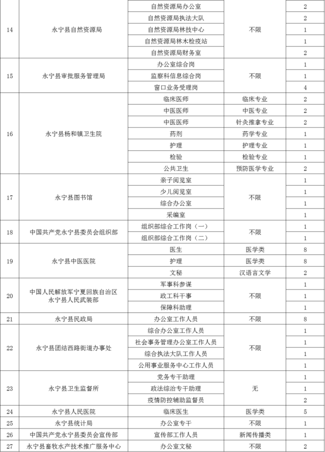 2021-08-09 22:23:18閱讀()銀川公共招聘網(wǎng)根據(jù)《自治區(qū)人力資源和社會保障廳 財政廳關(guān)于做好2021年高校畢業(yè)生到機(jī)關(guān)事業(yè)單位實習(xí)工作的通知》(寧人社函〔2021〕67號)文件精神,現(xiàn)將永寧縣高校畢業(yè)生機(jī)關(guān)事業(yè)單位招募公告予以公示。