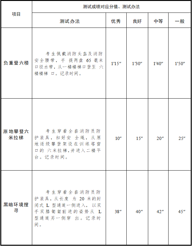 政府專職消防隊(duì)員崗位適應(yīng)性測試項(xiàng)目及標(biāo)準(zhǔn)