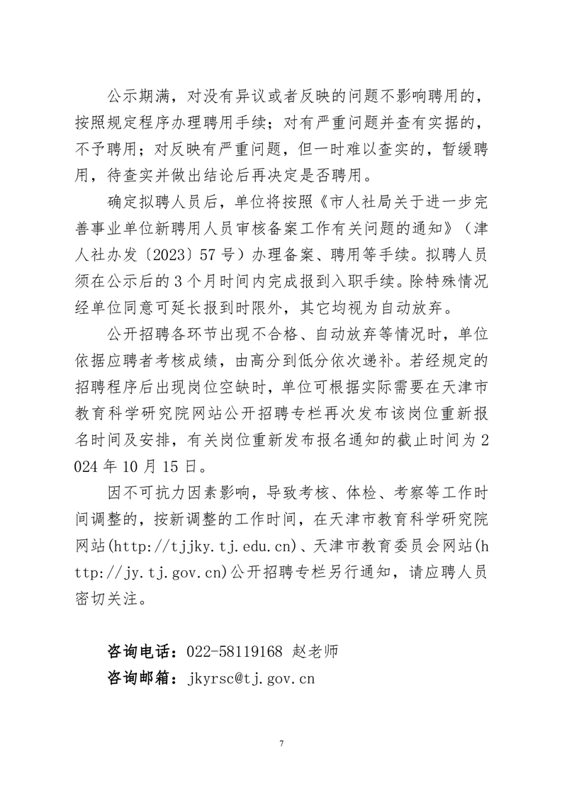 2024-03-22 17:17:37閱讀()天津市教育科學(xué)研究院根據(jù)《天津市事業(yè)單位公開招聘人員實(shí)施辦法》等有關(guān)文件要求,結(jié)合本單位人員需求實(shí)際情況,按照民主、公開、競爭、擇優(yōu)的原則,擬面向社會(huì)公開招聘教育科研人員,現(xiàn)將有關(guān)事項(xiàng)公告如下。