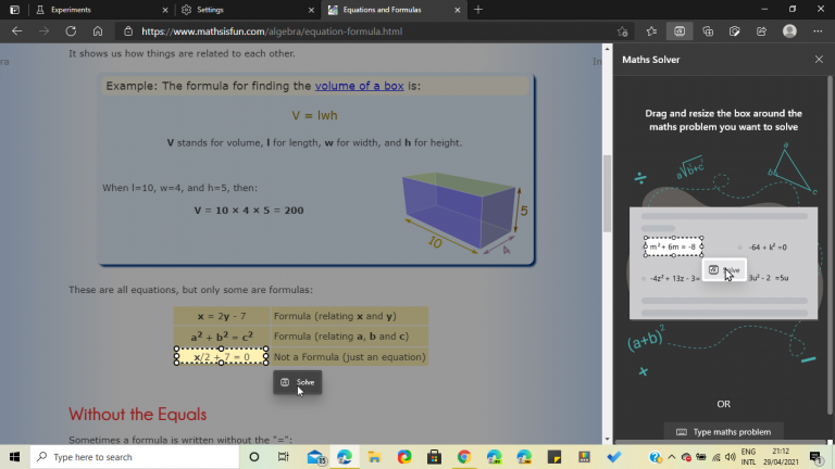 2021-04-30 11:58:54閱讀()互聯(lián)網(wǎng)4月30日消息上個(gè)月,微軟在其Edge瀏覽器中宣布了一項(xiàng)新的“MathSolver”(數(shù)學(xué)求解器)功能,可以幫助用戶(hù)解決數(shù)學(xué)問(wèn)題。最近幾周在Canary頻道內(nèi)測(cè)試該功能后,微軟終于將MathSolver帶給了運(yùn)行穩(wěn)定版Edge瀏覽器的用戶(hù)。