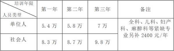 (3)績效工資:第一學年500元/月,第二學年800元/月,第三學年1800元/月(需具備執(zhí)業(yè)醫(yī)師資格)。全科醫(yī)學、兒科、婦產(chǎn)科、麻醉科等專業(yè)住培醫(yī)師補助在以上基礎上每月增加200元。