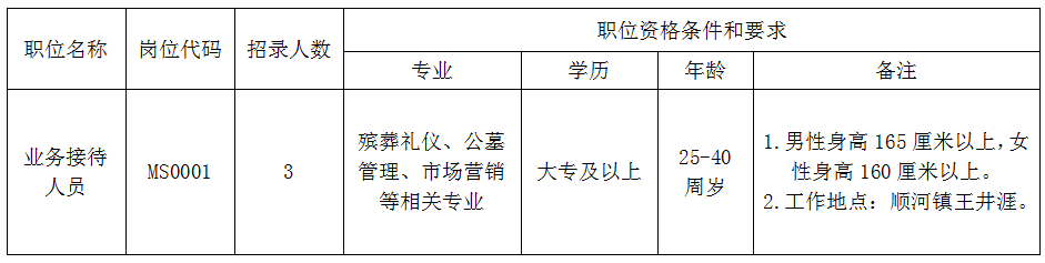 (3)愿意從事公墓一線工作,服從單位工作安排和調(diào)配,具備從事公墓工作的心理承受能力和勝任本崗工作的身體條件;